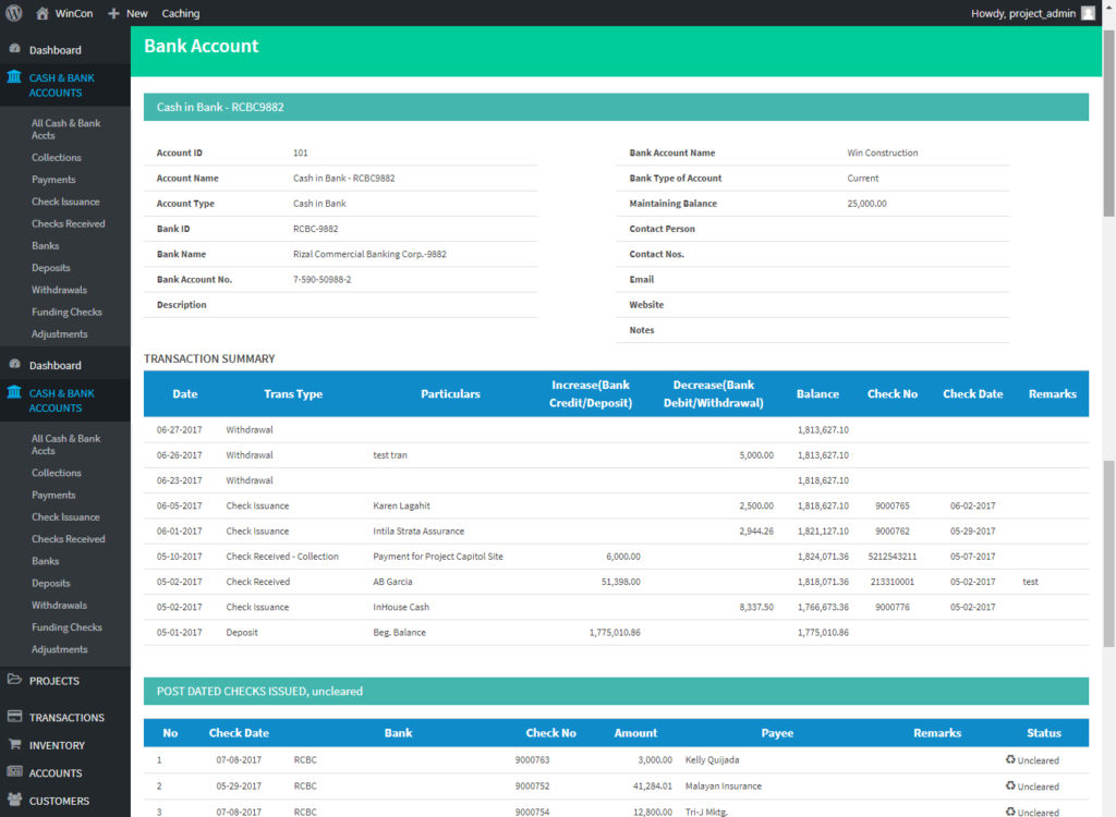[et_pb_section bb_built=”1″ admin_label=”section” _builder_version=”3.0.49″ custom_padding=”10px|||”][et_pb_row admin_label=”row” background_position=”top_left” background_repeat=”repeat” background_size=”initial” _builder_version=”3.0.49″ background_position_1=”top_left” background_repeat_1=”no-repeat” background_position_2=”top_left” background_repeat_2=”no-repeat” custom_padding=”10px|||”][et_pb_column type=”3_4″][et_pb_post_title admin_label=”Post Title” _builder_version=”3.0.49″ title=”on” meta=”off” author=”on” date=”on” categories=”on” comments=”on” featured_image=”off” featured_placement=”below” parallax_method=”on” text_orientation=”left” text_color=”dark” text_background=”off” border_style=”solid” custom_margin=”40px|||” /][et_pb_text admin_label=”Cash and Bank account” _builder_version=”3.0.49″ background_layout=”light” text_orientation=”left” border_style=”solid”]All the bank transactions can be monitored in the “Cash and Bank Account” menu. Click the specific bank account you want to monitor and view the transactions (see below).