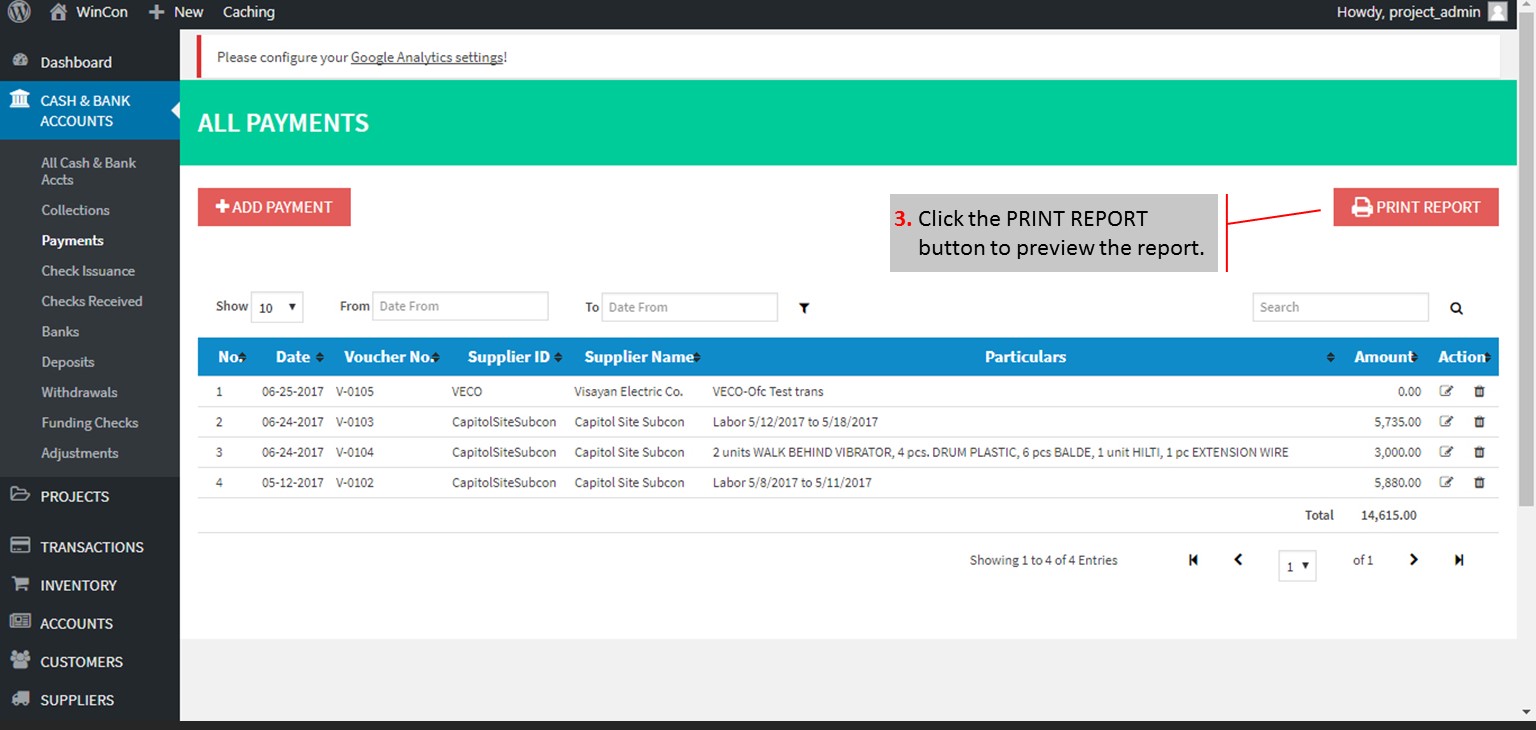 Here’s the procedure on how to print payment reports: Click to zoom the slideshow.The columns in All Payments menu are sortable. Just click on the “sort” icon. Entries can also be searched using the search box on top.