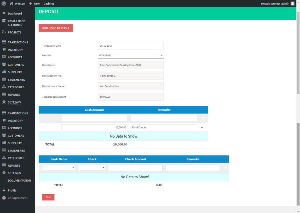 - Please note that the total deposit amount is total of cash and check deposit.
